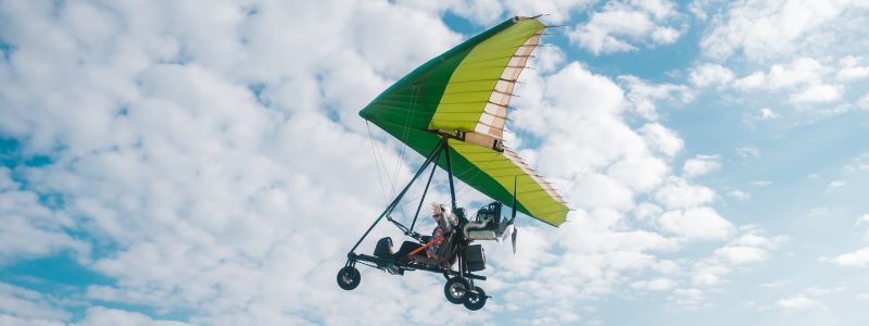 Microlight trike pilots sit in a propeller-driven tricycle pod suspended below a fabric flex-wing. Like Hang Gliders they are weight shift controlled. However, Microlights are more versatile allowing you to fly higher, faster and in more varied weather. Running costs are slightly higher, and they need a trailer for transport unless your aircraft is stored at an airfield, which is commonly the case.